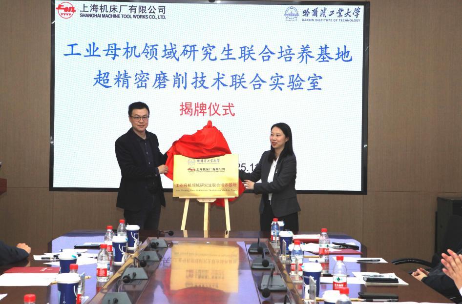 近日,哈尔滨工业大学—上海机床厂有限公司工业母机领域研究生联合培养基地正式揭牌;同日,上海机床厂有限公司—哈尔滨工业大学机电工程学院超精密磨削技术联合实验室亦正式揭牌成立。 -