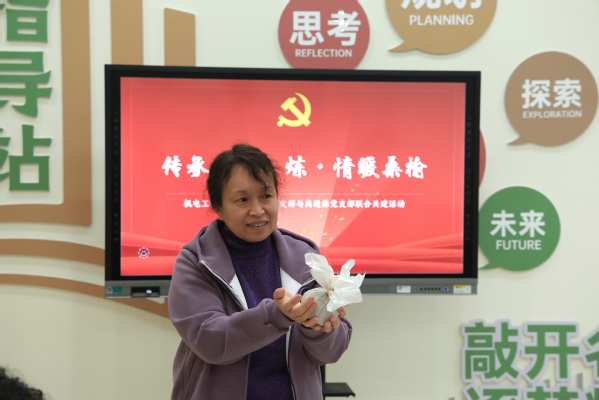 (张丽群/文 李婉辰/图)在全国第十六个“敬老月”到来之际,为深入弘扬中华民族尊老、敬老、爱老的传统美德,10月15日下午,机电工程学院院办机关党支部与离退休党支部在机械楼1026室联合举办了以“传承‘锤’炼,情暖桑榆”为主题的共建活动。退休与在职教师共聚一堂,在指尖的协作与艾草的清香中相互帮助,共同完成了艾草养生锤制作,在温馨和谐的氛围中共忆教育初心,传递温暖情谊。