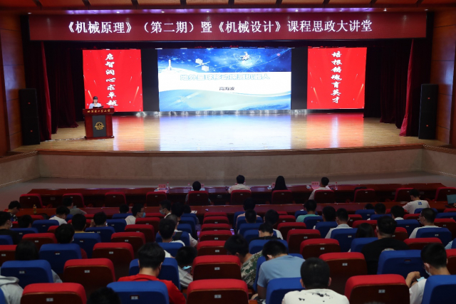 “机械原理暨机械设计课程思政大讲堂”(以下简称“大讲堂”)报告会于2022年6月23日晚19:00在活动中心301剧场成功举办。“大讲堂”邀请机电工程学院院长高海波教授为机电工程学院2019、2020级本科生作主题报告。本科生院副院长兼教学研究与质量管理处处长王广智教授、机电工程学院党委副书记苏吉、机械设计系副主任张宏生副教授、机械原理及机械设计课程负责人及教师代表出席了报告会。报告会由机械原理课程负责人于红英教授主持。